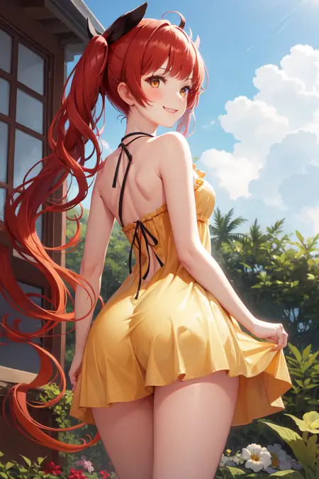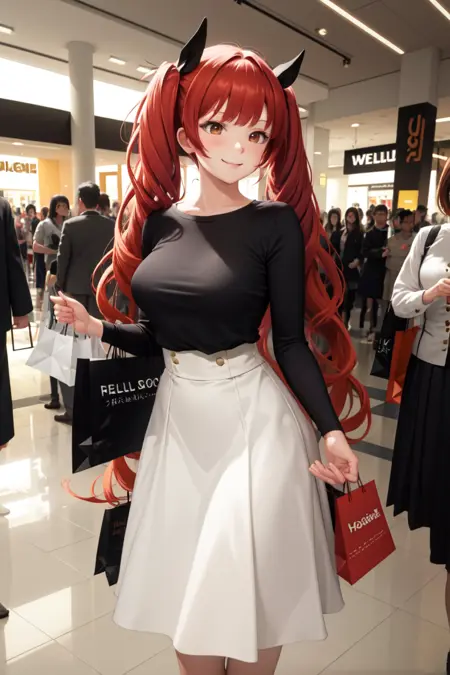 그녀의 헤어스타일에는 "긴 머리, 트윈테일"을 사용하세요.