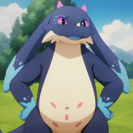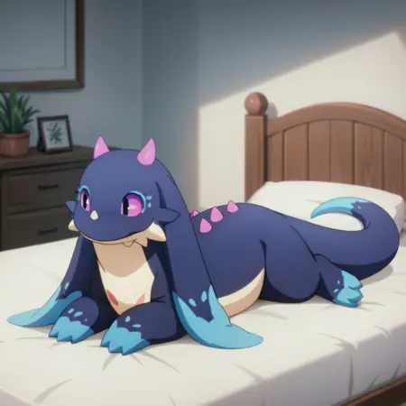 Feirunespdr, feral, female, Wyrm, blue skin, purple sclera,