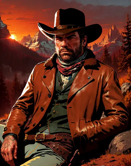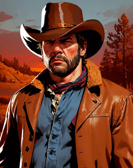 (这个LORA不是针对角色的!Stable Diffusion中已有Arthur Morgan和John Marston的标签,但用这种风格生成时,它们与原作形象极其接近)