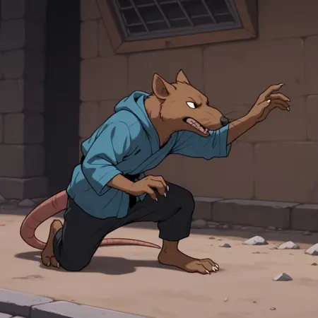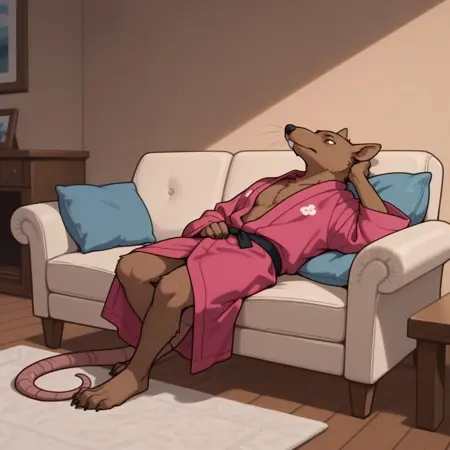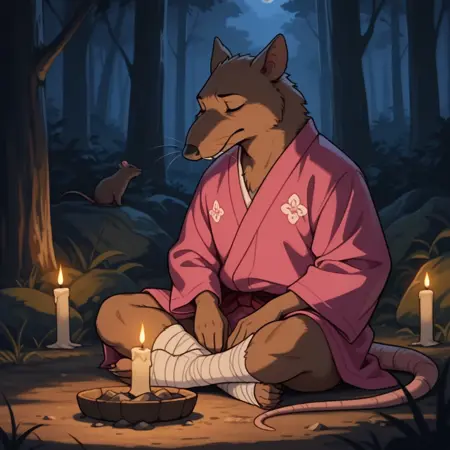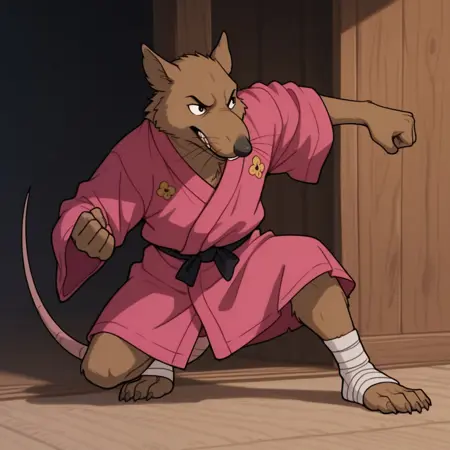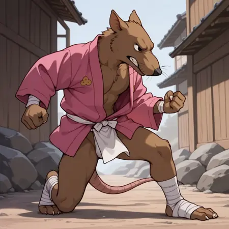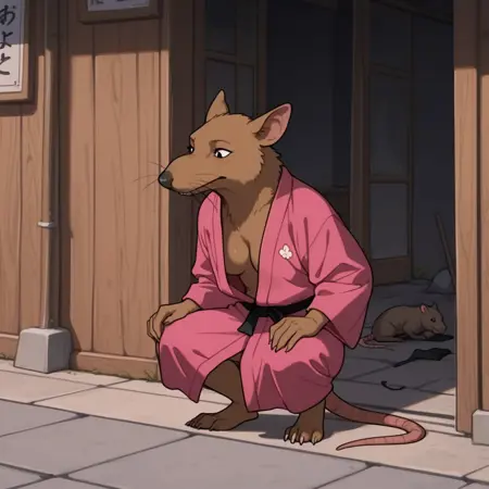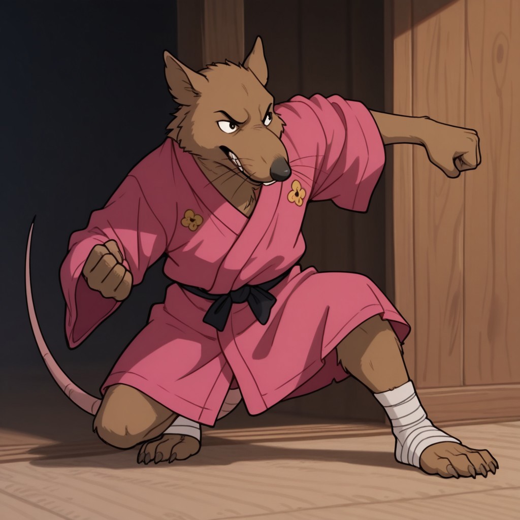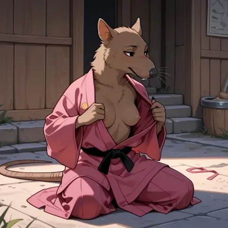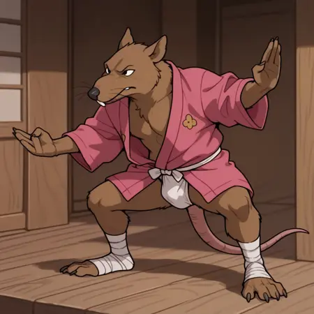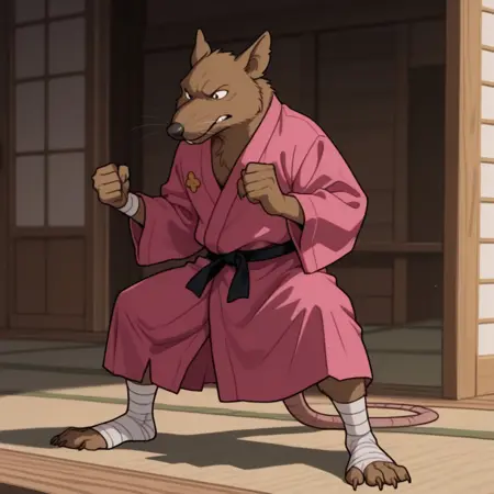 Splinter87IL, anthro, male, rat, brown fur, whiskers, pink kimono, foot wraps