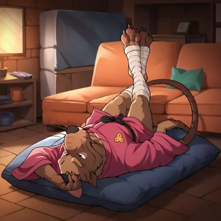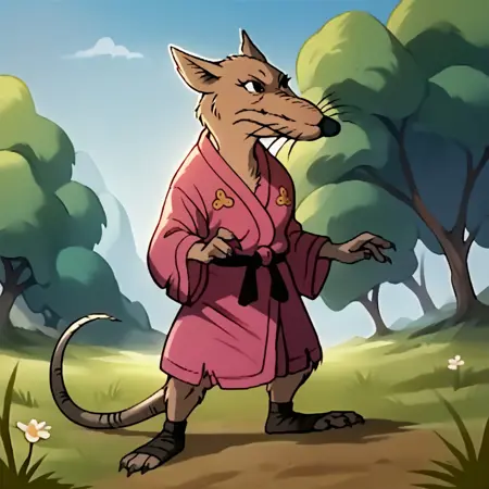 Splinter87, anthro, male, rat, brown fur, rat tail, rat feet, pink kimono, foot wraps
