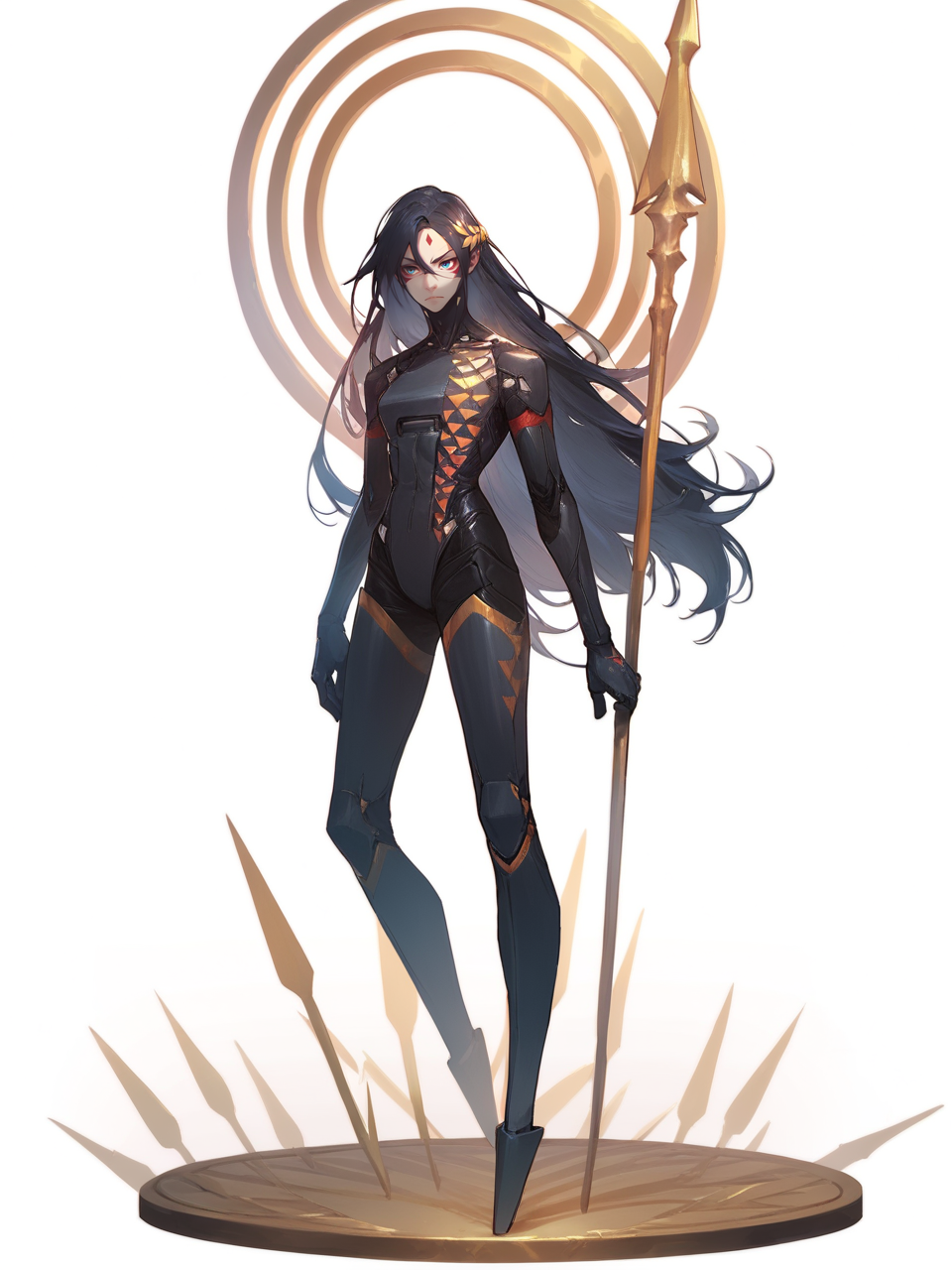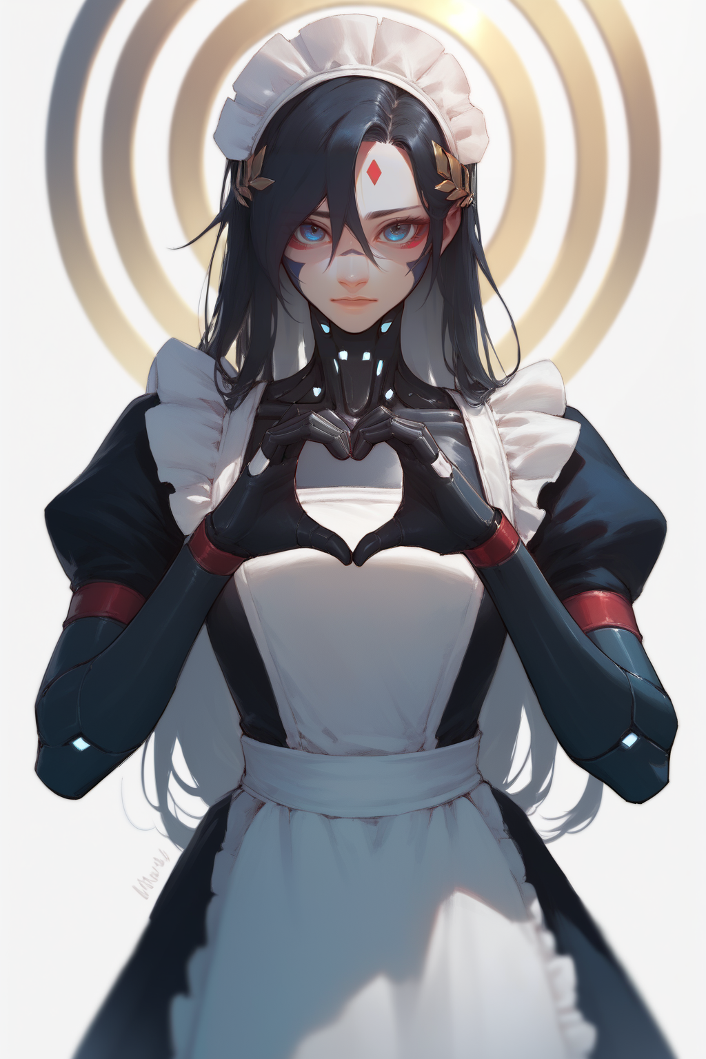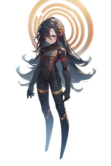 signalisfalke、アンドロイド、顔の模様、月桂冠の冠、黒髪、長い髪、ボディスーツ