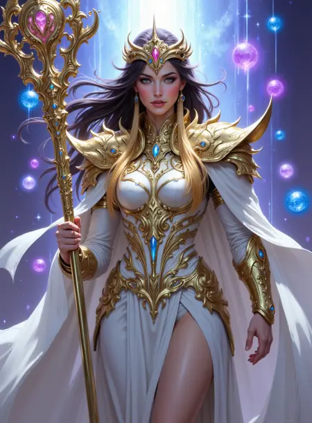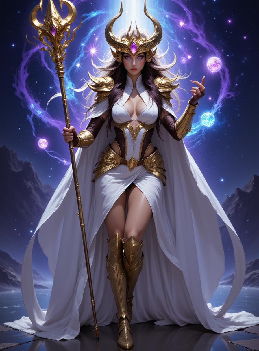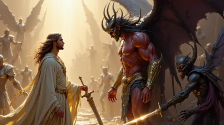 多様なキャラクターデザイン:きらめくローブをまとった光り輝く天使や、鋸歯状の特徴と影のローブを纏う強大な悪魔を含む、天体の存在の鮮やかな表現を作成できます。