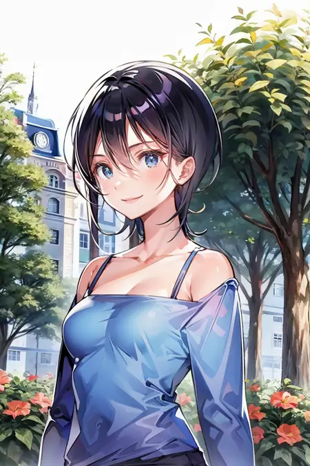 速星爱触发tag:1girl, solo, blue eyes, black hair, short hair,