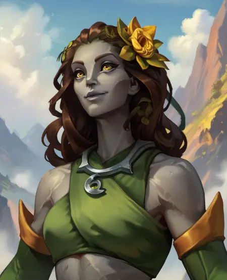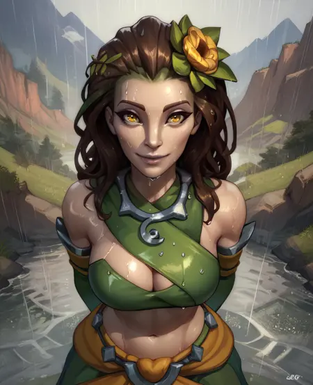 Inara, 긴 갈색 머리, 노란 눈