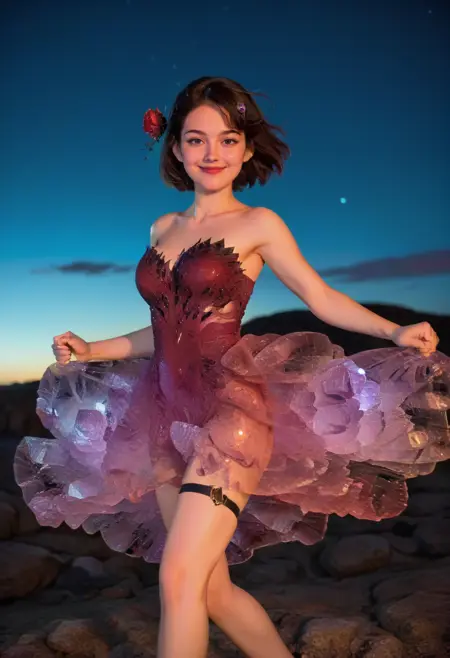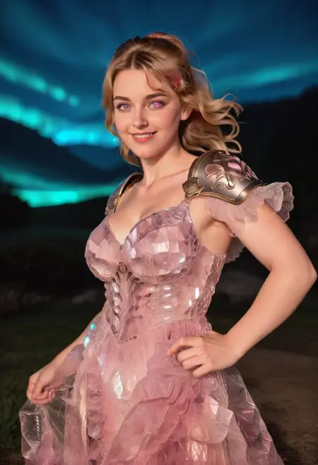 这个LoRA模型可能能够生成类似玫瑰石英的闪亮粉色服装。