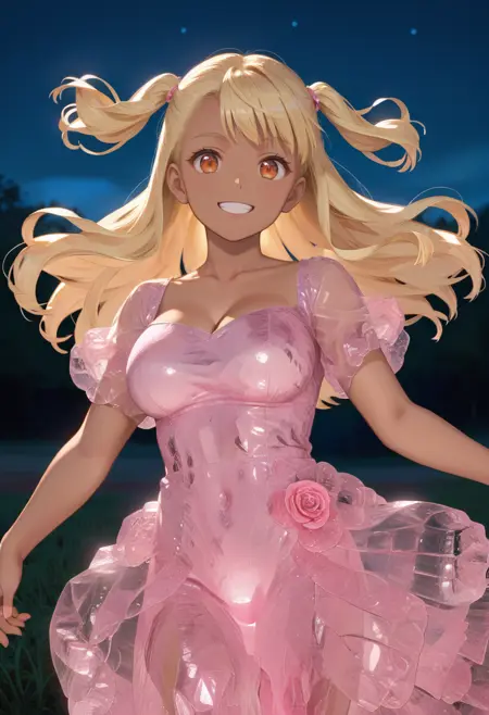 이 LoRA 모델은 로즈쿼츠처럼 반짝이는 분홍색 의상을 생성할 수 있을 것입니다.