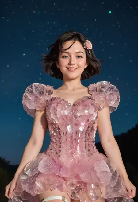 ローズクォーツのようにキラキラしたピンク色の服を生成できるかもしれないLoRAです。