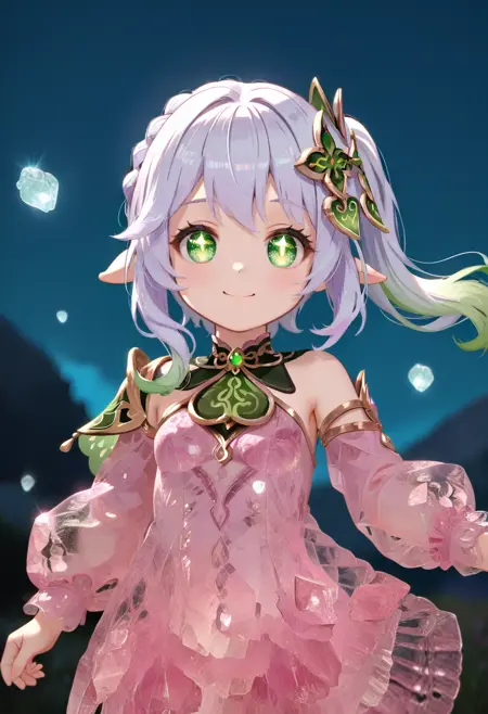 推荐触发词:rose quartz clothes, rose quartz dress, pink crystal clothes, pink crystal dress