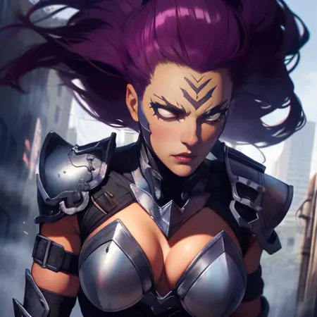 Fury, 큰 보라색 머리카락 또는 검은 빨간색 머리카락, 이마의 문양 또는 얼굴의 문양,