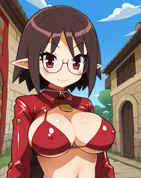 整体服装为红色,搭配棕色腰带和皮带——可将这些放入Neg中以降低出现概率