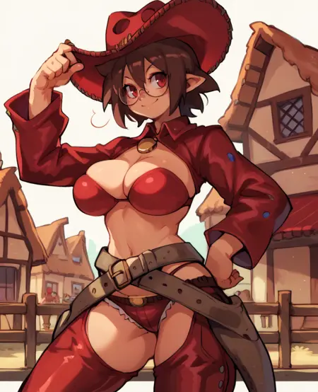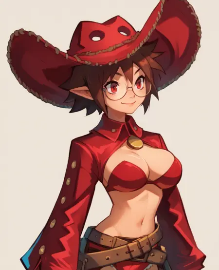 Gunslinger,尖耳朵,红眼睛,短棕色头发,戴眼镜,