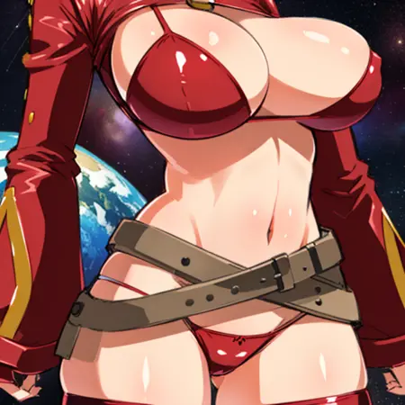 整体服装为红色,搭配棕色腰带和皮带——可将这些放入Neg中以降低出现概率