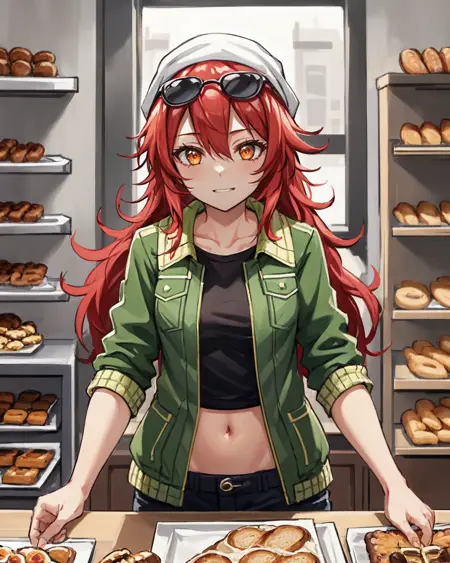 <lora:Jingo-06:0.7>, Jingo, 長い髪, 赤髪, 細かく乱れた髪, 側髪, オレンジ色の目, 小さな胸, 小柄, 若い,