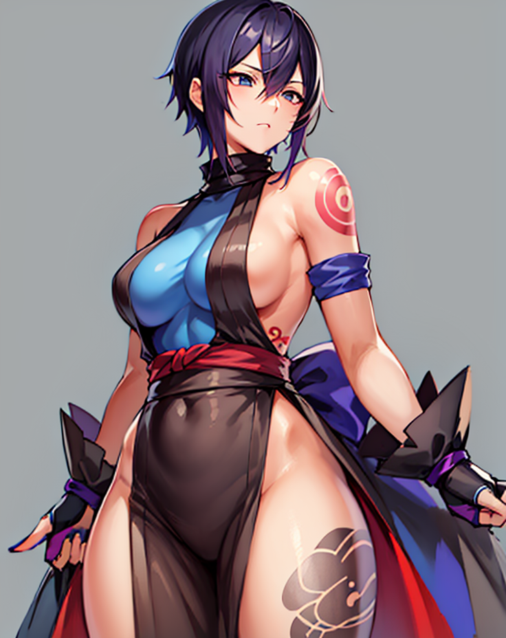 shikims, 手套, 裸露肩膀, 忍者, 日式服装, 纹身, 侧乳