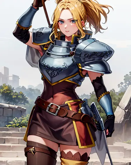 charlottems, gloves, armor, shoulder armor, pauldrons, breastplate, thighhighs, zettai ryouiki,