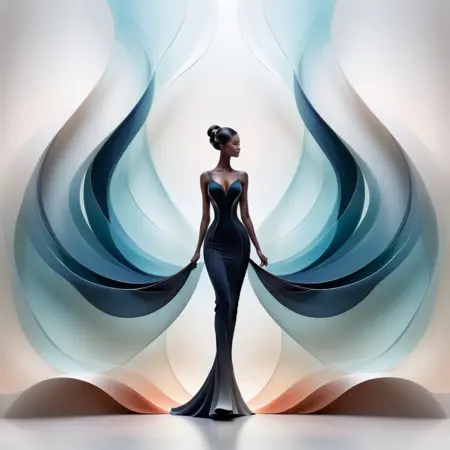 - 神秘形象,修长躯体,曲线向外延伸,渐变背景,极简美学