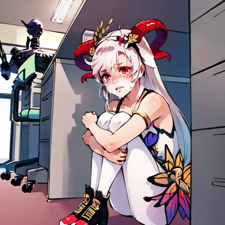 sitting, under table, crying, skeleton