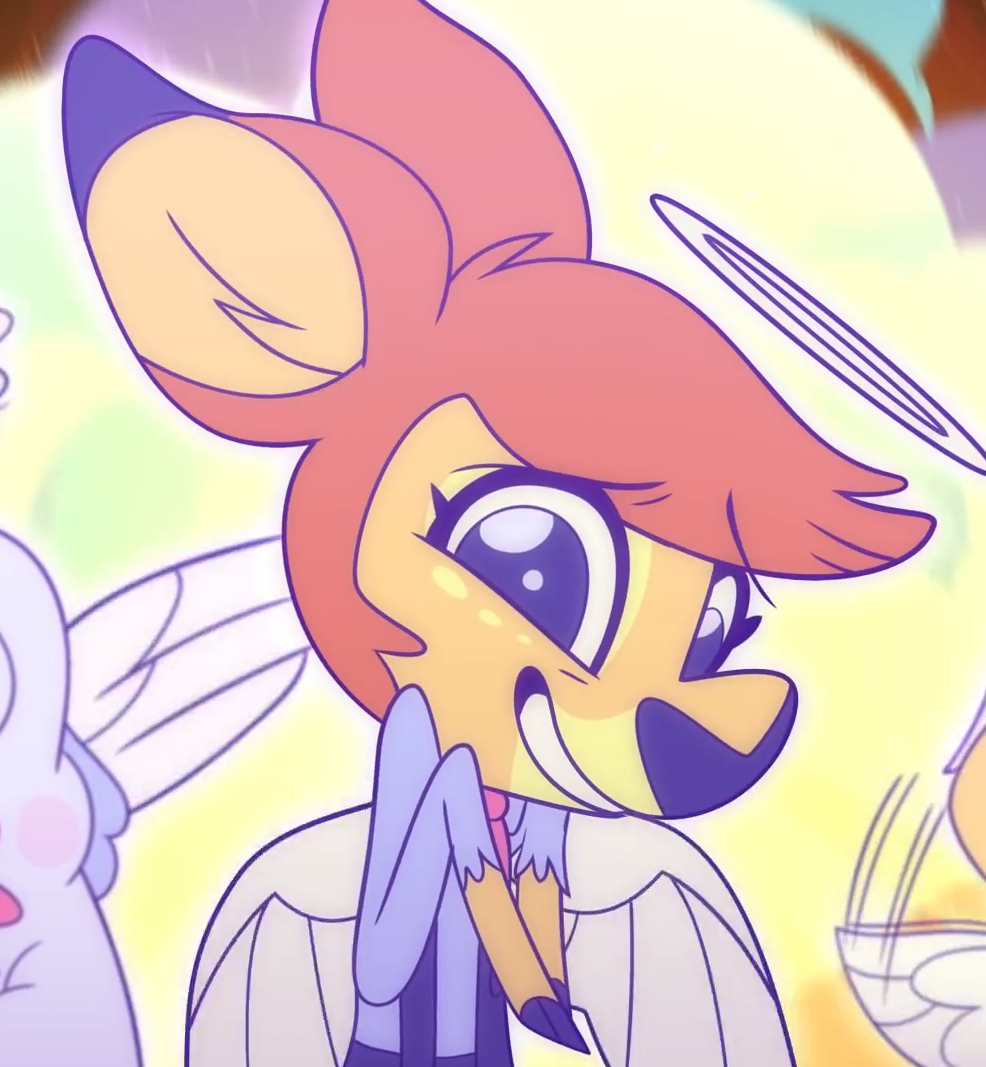 anthropomorphic fawn, light brown fur with lemon accents, brown hair, animal ears,