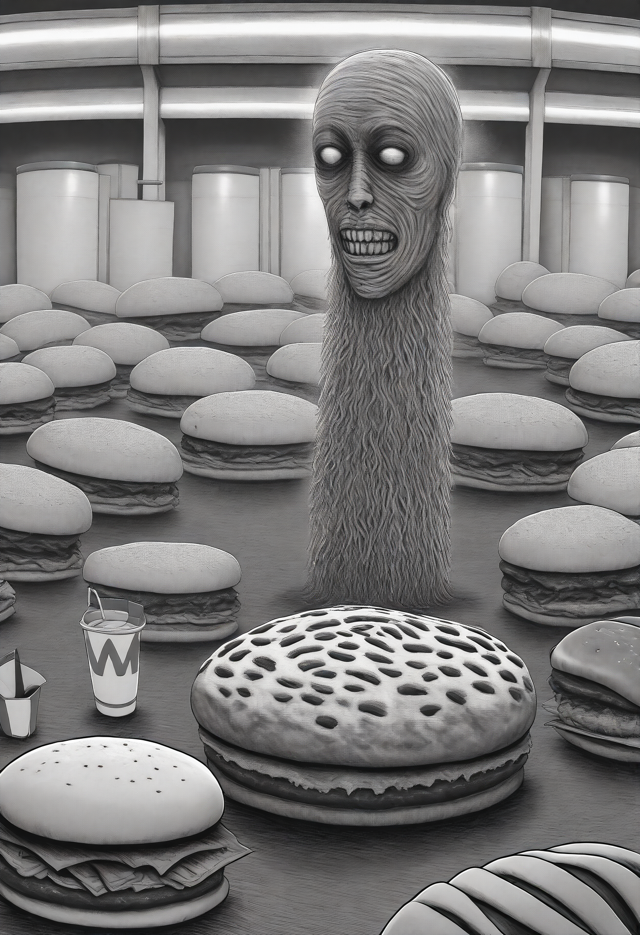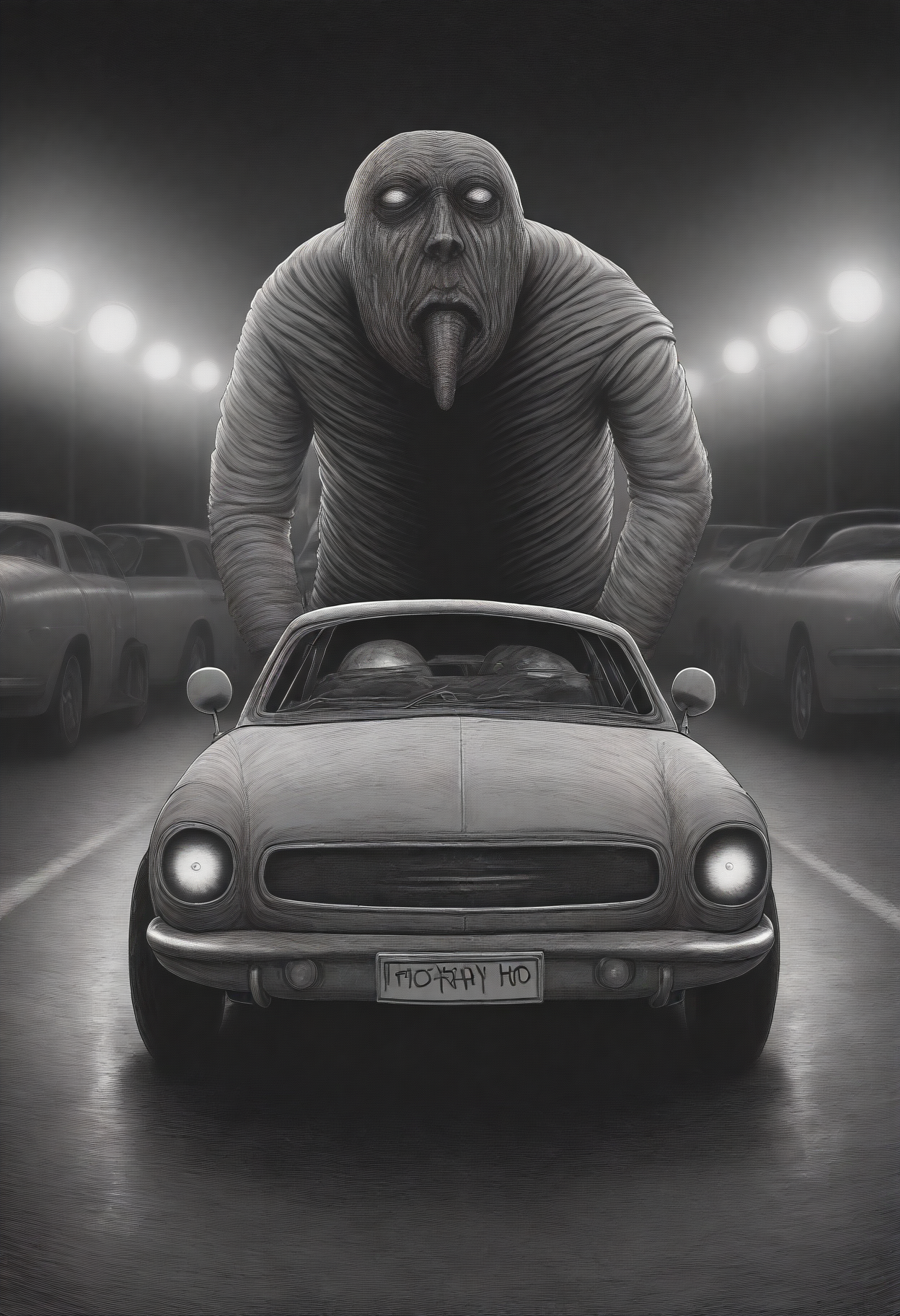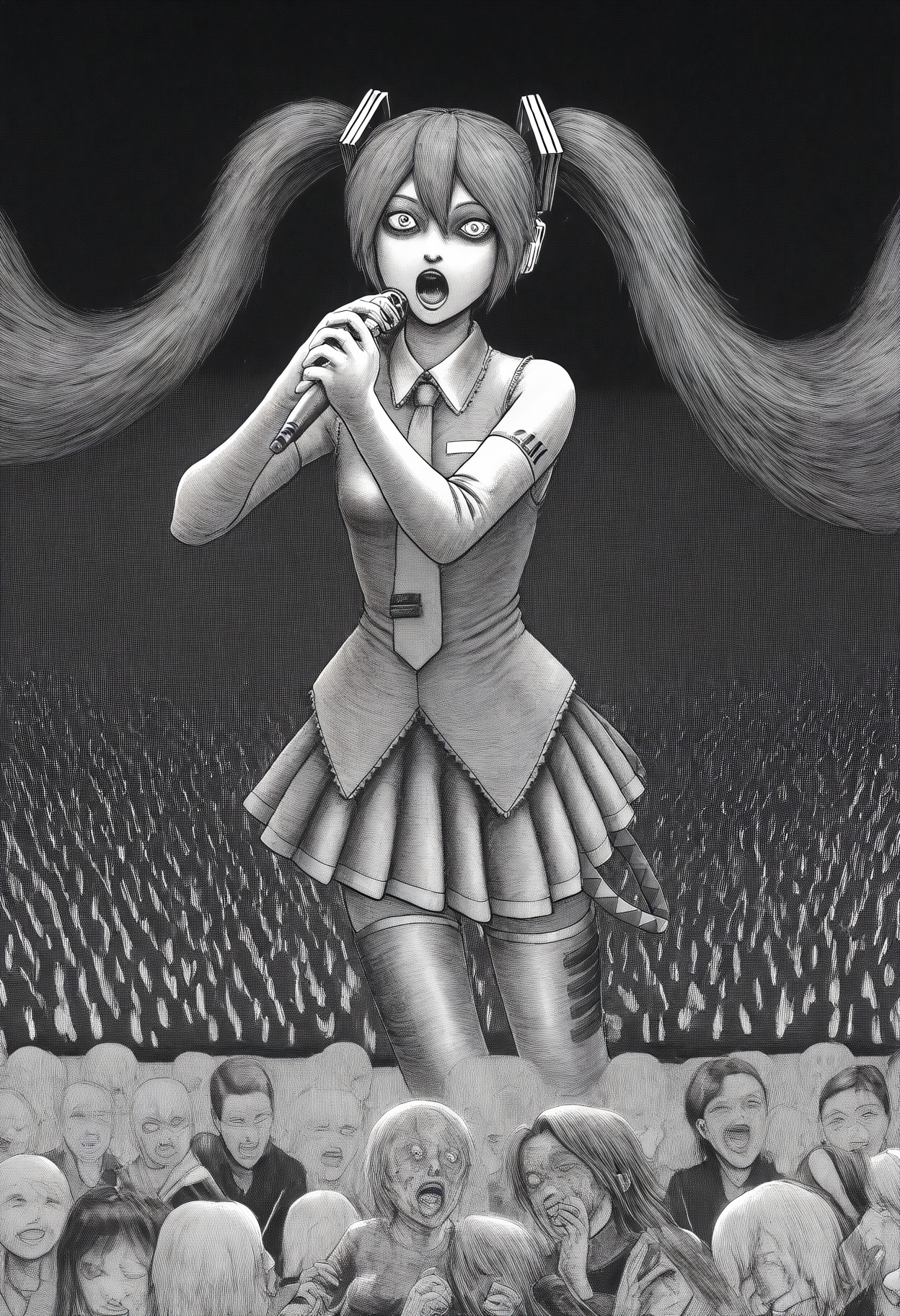 트리거 단어: "jitostyle, monochrome, greyscale, itou junji \(style\), horror \(theme\)"