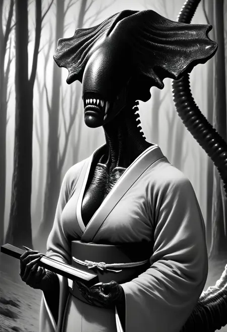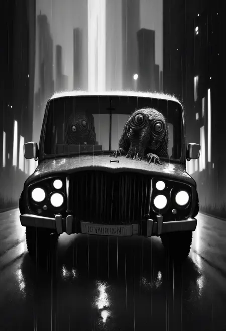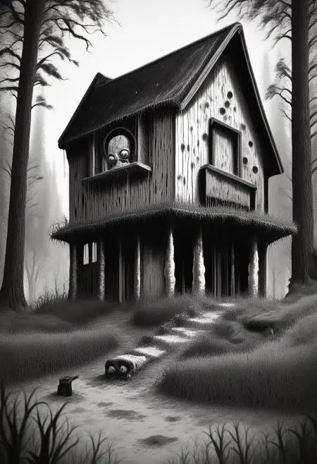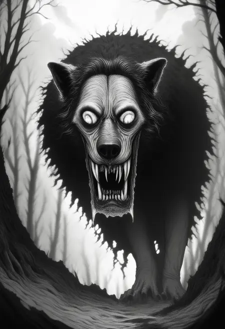 트리거 단어: "jitostyle, monochrome, greyscale, itou junji \(style\), horror \(theme\)"