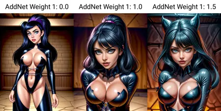 -- Sexiness: This is an interesting result - if you're describing clothes that shouldn't be super sexy, but your checkpoint keeps making them so - this can tend to push them back toward more "regal" without being slutty. Conversely, if you ARE describing sexy clothes and they aren't as sexy as you want - this can tend to make them a bit skimpier and sexier - without going full-nude unless asked for. You may get somewhat varying results across different checkpoints, but... in general, most seem to be working this way with a fair amount of consistency.