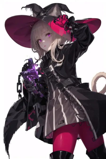 OG コスチューム: 猫の尾、鎖、猫娘、パンティストッキング、黒い手袋、黒い靴、長袖