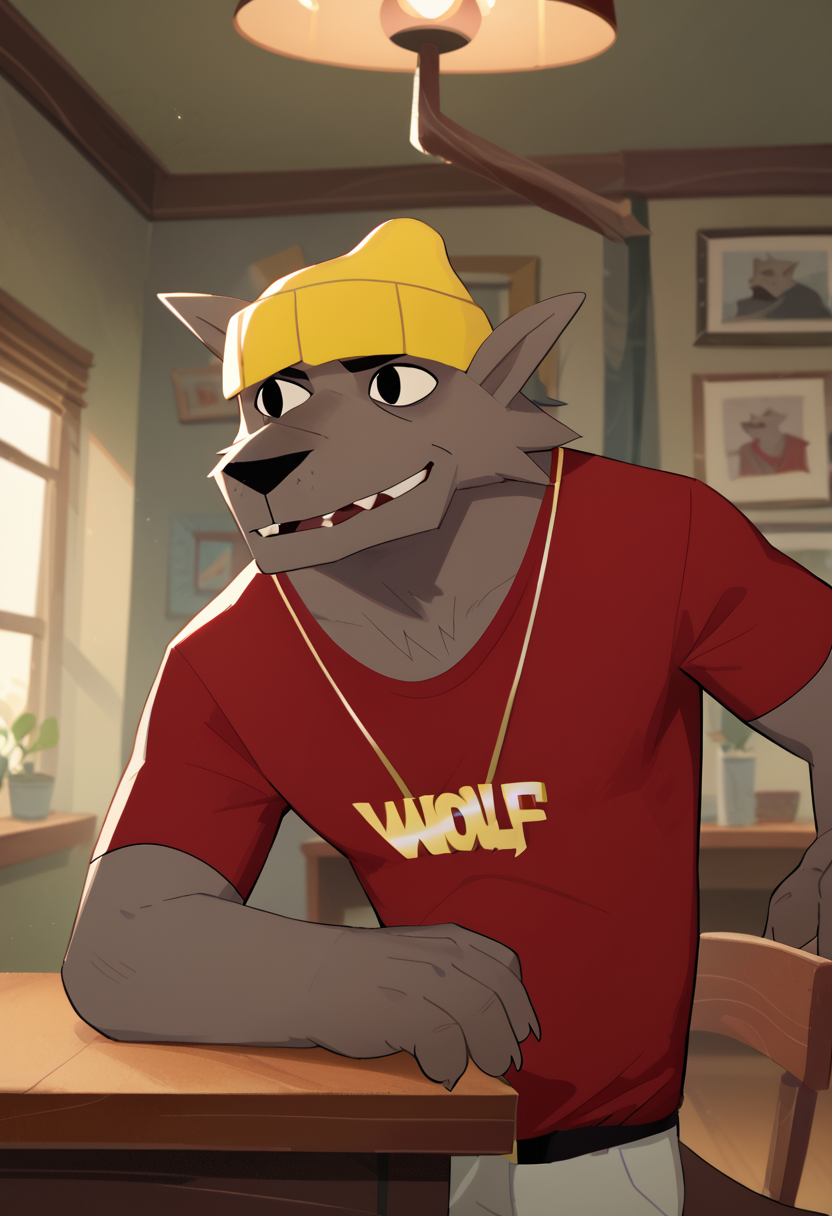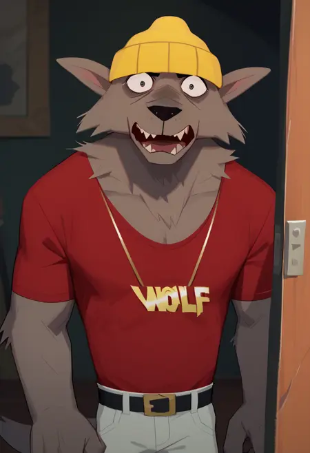 Optional/Опционально: Solo, furry, red shirt, yellow headwear