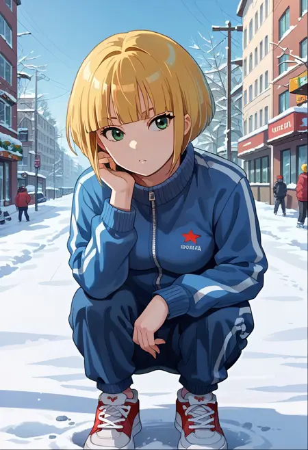 Trained on 24 pics, 5 of which were official art and rest fan art. Only thing remotely special for training data here is that I cropped her out of the background (hooray for fuzzy select!) for a few pics, and some pics were cropped to waist up because she was drawn with a skirt in them for some reason. Aside from that oddity, fanart is pretty consistent in the character’s appearance, and I’ve got enough full body pics as well as a few rear pics I’m confident this will hold up to different prospective. Her short hair and loose clothes made auto-label think she was a boy a few times, but I purged all those tags. The image rater is remarkably bad at realizing any output is of a girl though.