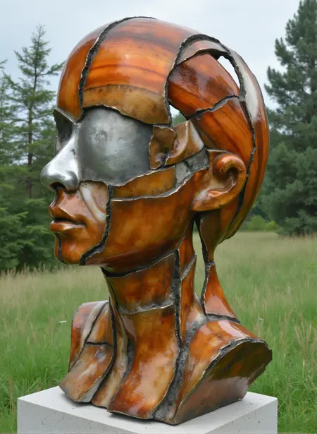Experiment with lowering the guidance scale from the default of 3.0-3.5 down to 2.5 to allow for more creative prompting, doing this will allow for more flexibility both in form and materials. The LoRA was trained primarily on busts but seems flexible enough for figures and full bodies as well.