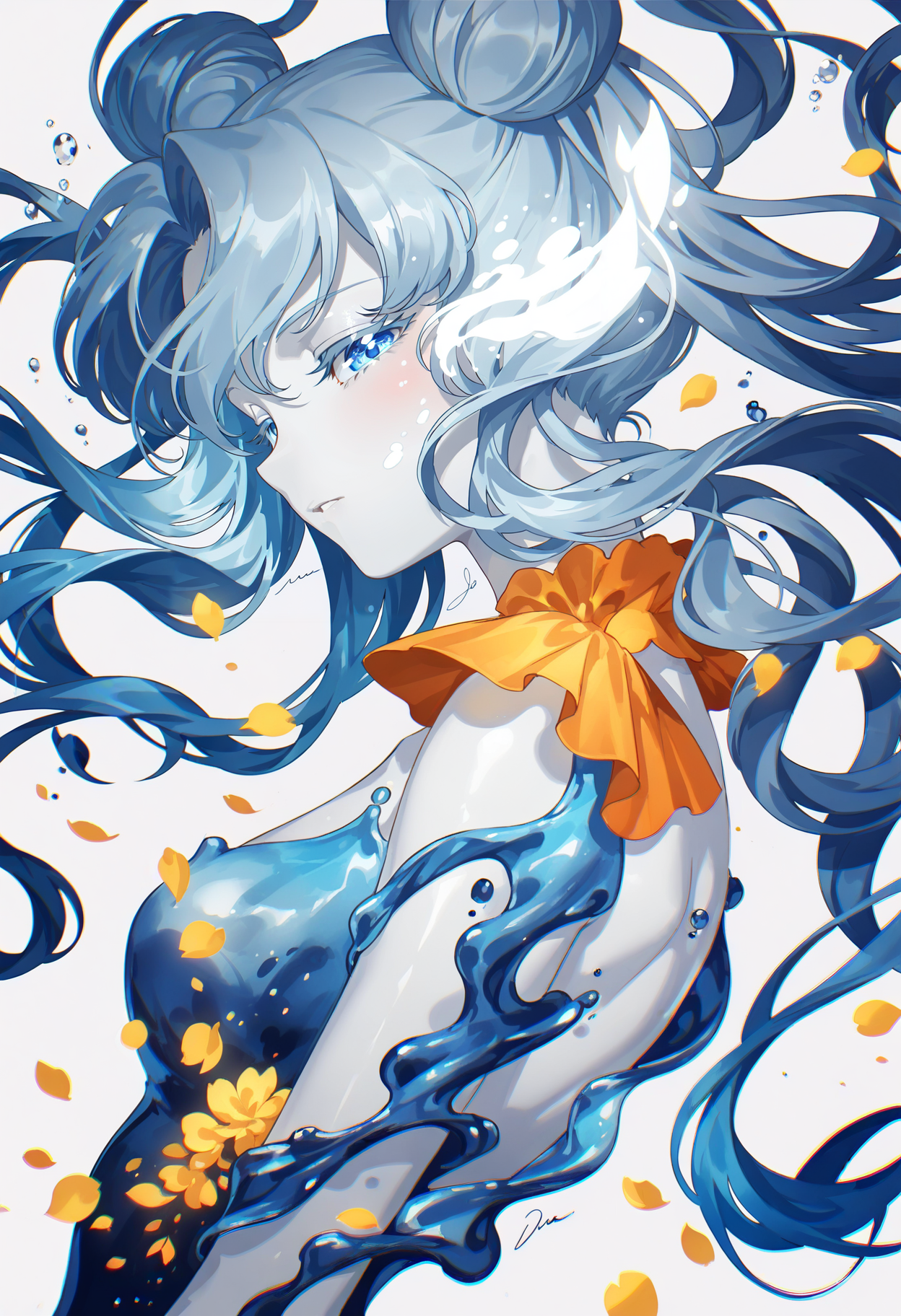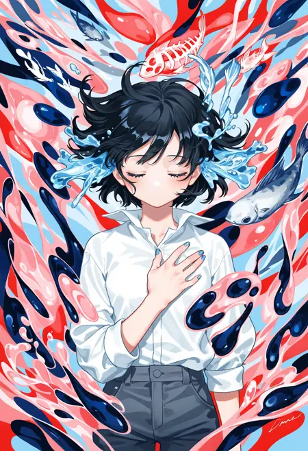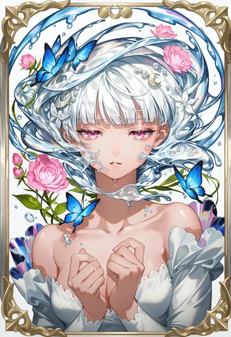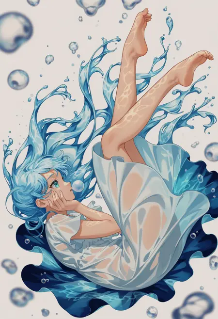 SilvermoonMix03 focuses on abstract elements and dynamic contents. Abstract elements such as hair, water, or ribbon; detailed background and foreground; dynamic poses and angles can effectively demonstrate these.