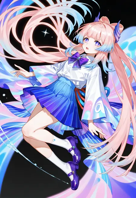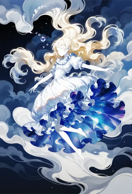 SilvermoonMix03 focuses on abstract elements and dynamic contents. Abstract elements such as hair, water, or ribbon; detailed background and foreground; dynamic poses and angles can effectively demonstrate these.