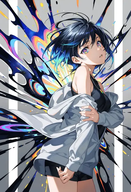 SilvermoonMix03 专注于抽象元素和动态内容。诸如头发、水或丝带等抽象元素、细致的背景与前景、动态的姿势与角度可以有效展现这些特性。