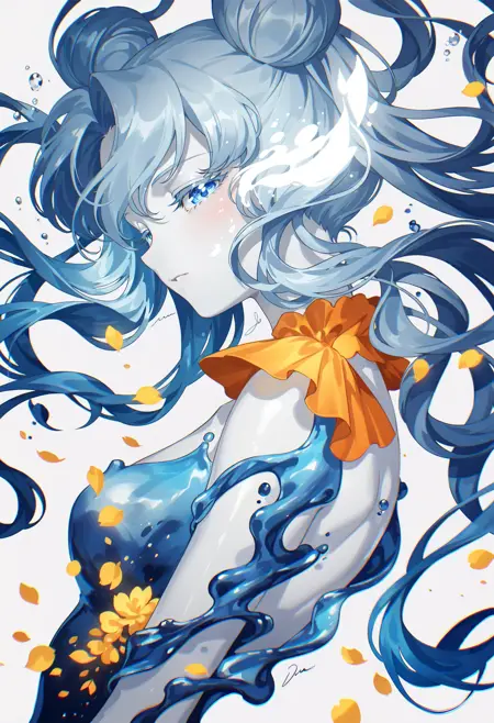 SilvermoonMix03は、抽象的要素とダイナミックなコンテンツに焦点を当てています。髪の毛、水、リボンなどの抽象的要素、詳細な背景と前景、ダイナミックなポーズや角度が、これらを効果的に表現できます。