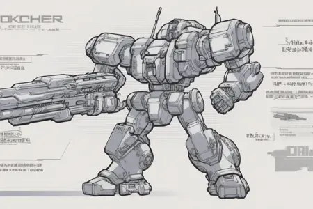 mechs and monsters, mecha, robot, monochrome, science fiction, no humans, solo, weapon, machinery, greyscale, cannon, gun, radio antenna, missile pod, arm cannon, standing, turret, concept art, redesign