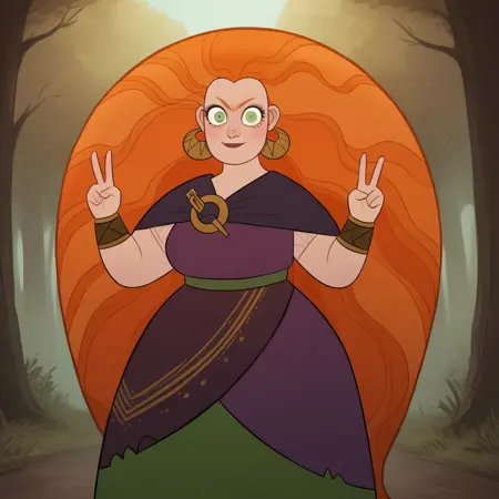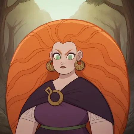 MollMactire, 1girl, solo, orange hair, big hair, green eyes, hoop earrings,
