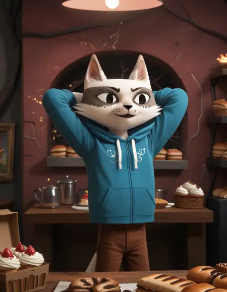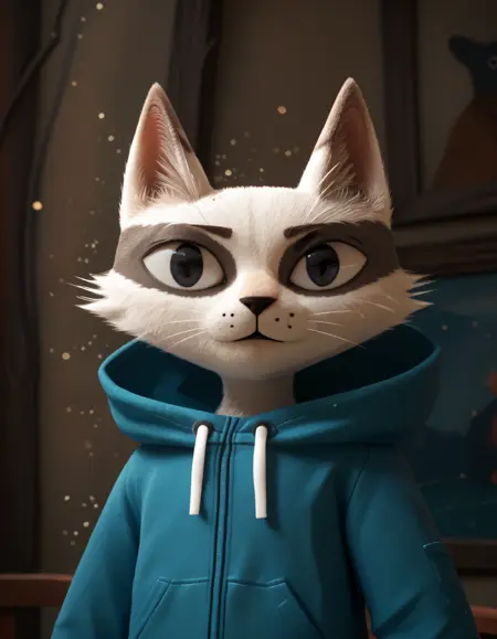 bad9er6at, hood, hoodie, detailed background, solo, furry, blue hoodie, cat, animal ears, drawstring, black eyes, white sclera, 1boy, furry male, cat ears