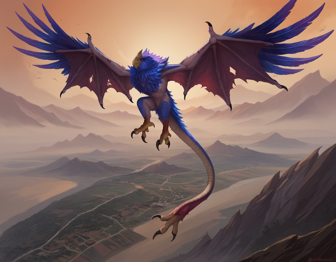 Cockatrice, monster, wings, red eyes, talons, tail,