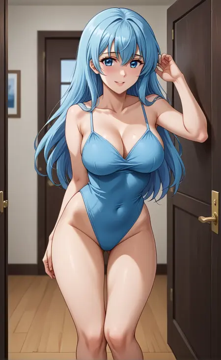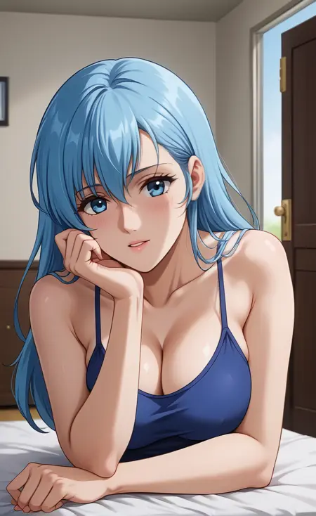 (blue_hair,light_blue_hair,long_hair,hair_between_eyes, blue_eyes, eyelashes:1.2),