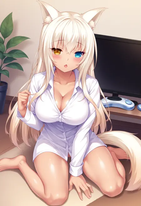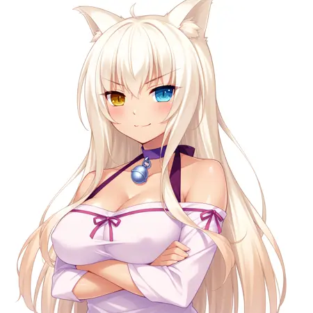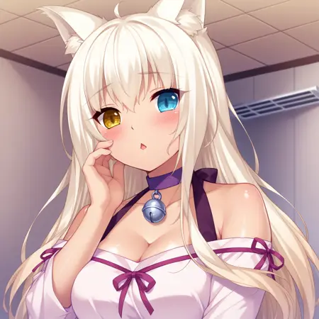 Coco_nut, very_long_hair, white_hair, heterochromia, yellow_eyes, blue_eyes, hair_between_eyes, cat_ears, animal_ear_fluff