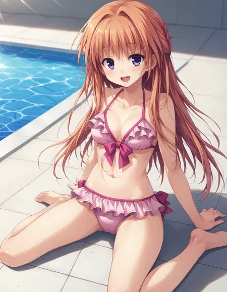 hatsuhime iroha, long hair, orange hair, pink hair, hair intakes, purple eyes