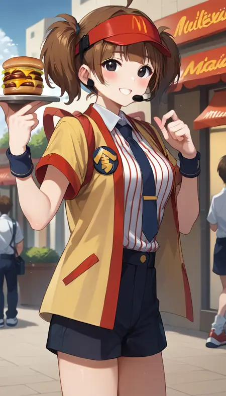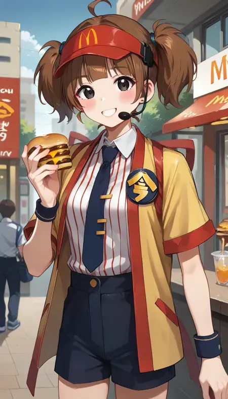 This is Double Cheese Mi of the female poster girl in Japan's <McDonald's>