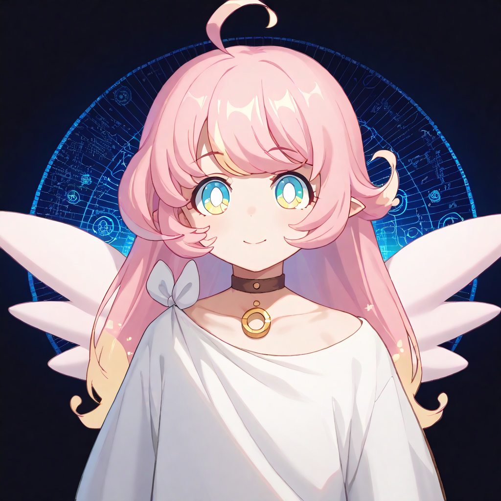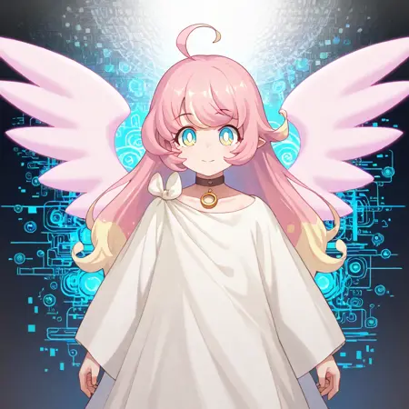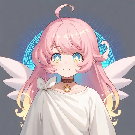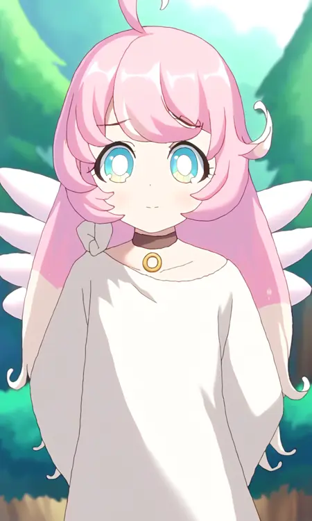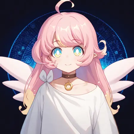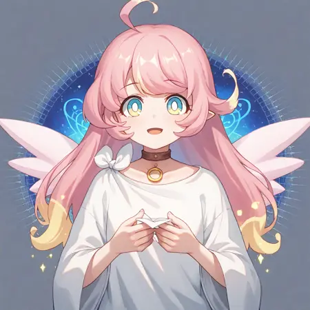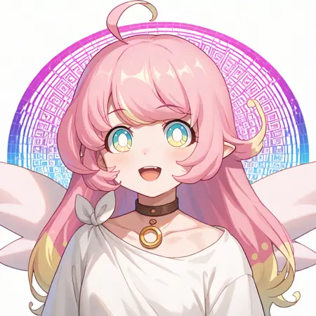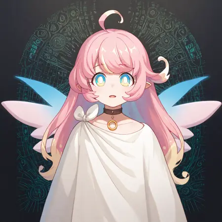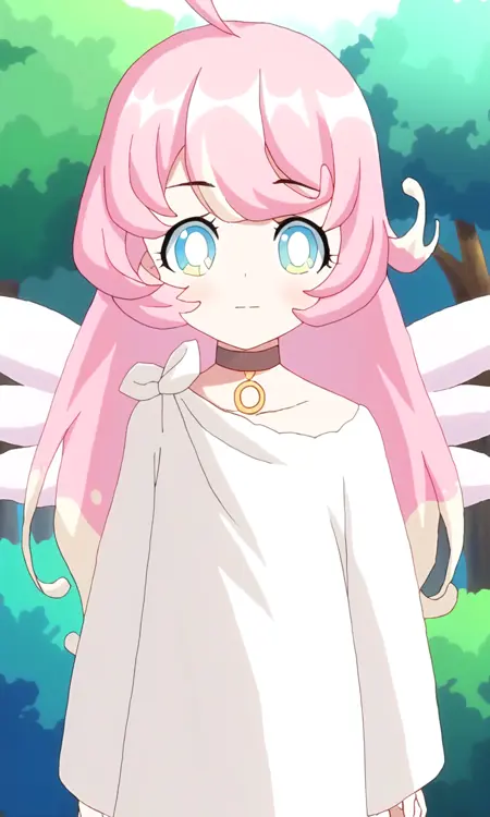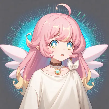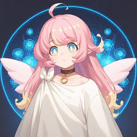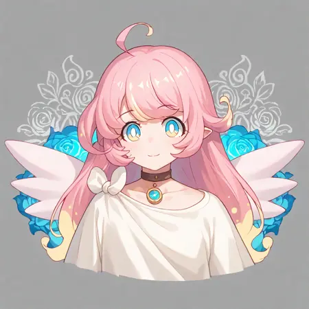 raphy_(princess_connect), 1girl, long hair, pink hair, bangs, multicolored hair,pointy ears,blue eyes, choker, wings,