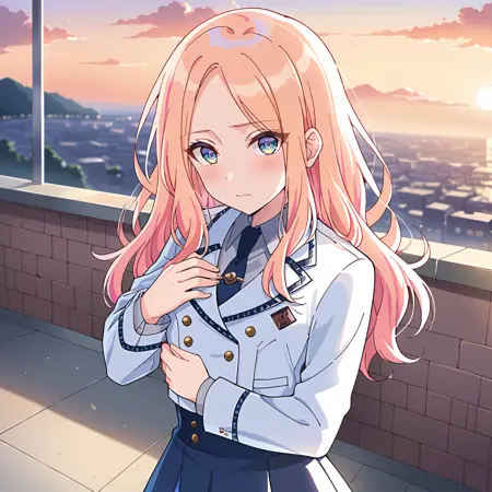 1girl, senajuo2idol, multicolored hair, sendress2 detached sleeves, sendress2 dress, sendress2 ankle boots,