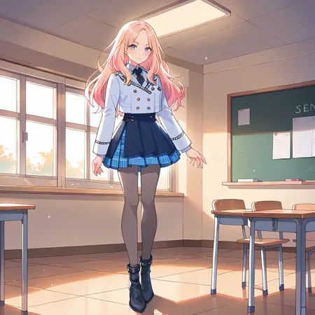 1girl, senajuo2idol, multicolored hair, gray collared shirt,sensch5 high heel boots, sens6 skirt, sensch3 jacket, sensch2 necktie, sensch1 pantyhose,
