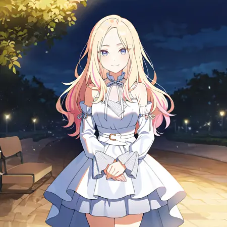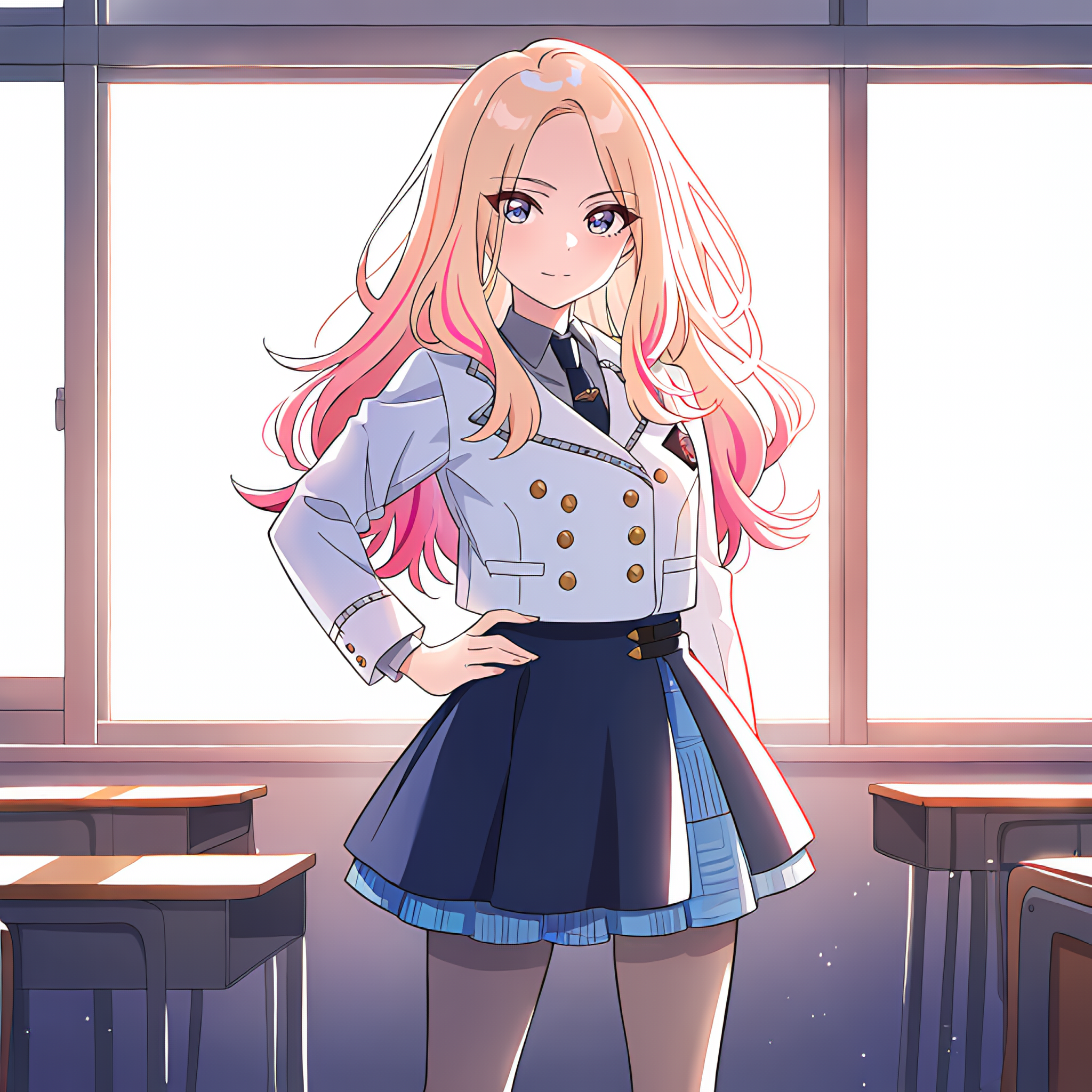 1girl, senajuo2idol, multicolored hair, sendress2 detached sleeves, sendress2 dress, sendress2 ankle boots,