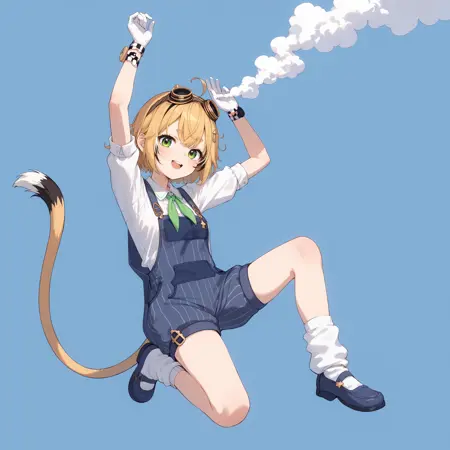 d00by3d, 1girl, ブロンドの髪, ストライプの髪, 髪飾り, ネズミの尾, 手袋,