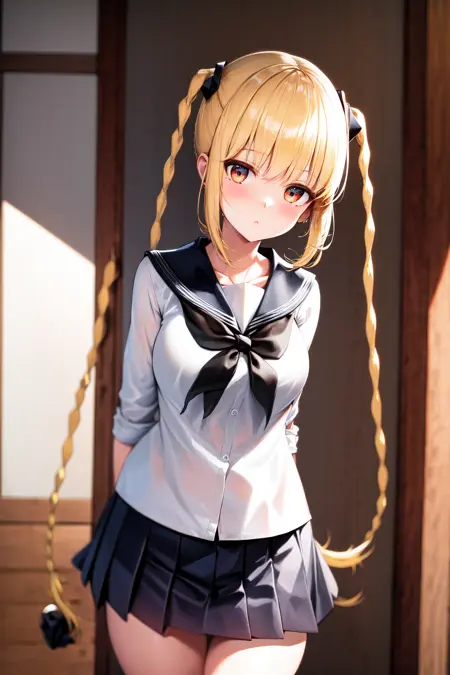 캐릭터 트리거: 1girl karino shuka blonde hair twin braids