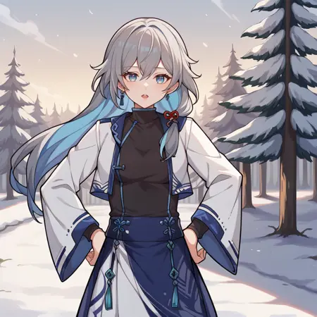 Fol004, WT_FuHua, fu hua, 青目, ローティーedヘア, ロングヘア, altサイドポニーテール, グレイヘア, カラードインナーヘア, alt青髪, チュルネックシャツ, 白ジャケット, altブラックシャツ, alt中国風服, altクロップドジャケット, 白ジャケット, 青トリム, altワイドスリーブ, 別の層になった袖, altブラック袖, alt白袖, ツートーンスカート, altロングスカート, 青スカート, alt白スカート,