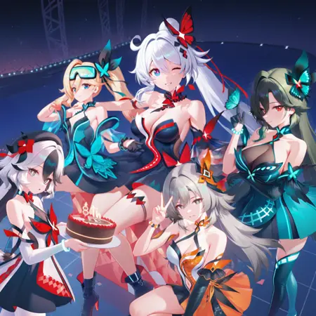 总体而言,该LoRA的稳定性不高,因为米哈游未发布该周年纪念艺术作品的高清图像,训练图像质量不佳。此外,每位角色仅有一张训练图,且最后但同样重要的是,共有五位不同角色,其中三位(如Kiana或Durandal)没有标识标签。因此,如果你的Vita/Coralie/Helia看起来有点奇怪,可以使用我的其他LoRA进行修正。只需添加该LoRA,并设置权重为1.0,但不要使用这些LoRA的激活触发词,只使用此处的触发词,效果会更好。
